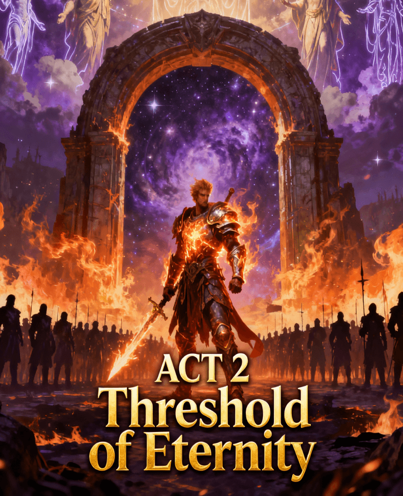 Ruggal, a mortal-born warlord who transcends into godhood through unyielding will and mastery over the Iron Legion. The blend of intense battles, strategic conquests, and deep internal conflicts, alongside its world-building and exploration of divine politics. Will he be able to save his domain ?